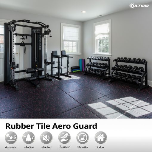 แผ่นปูพื้น Rubber Tile Aero Guard สีดำจุดแดง หนา 20 มม. กลิ่นน้อยที่สุด ใช้สำหรับติดตั้งภายใน น้ำหนักเบาเพียง 10 กก./แผ่น ติดตั้งง่าย มีขนาดให้เลือก 2 ขนาด 50*50 ซม. และ 1 เมตร x 1 เมตร(100*100 ซม.) **ราคาไม่รวมค่าจัดส่งและบริการติดตั้ง**
